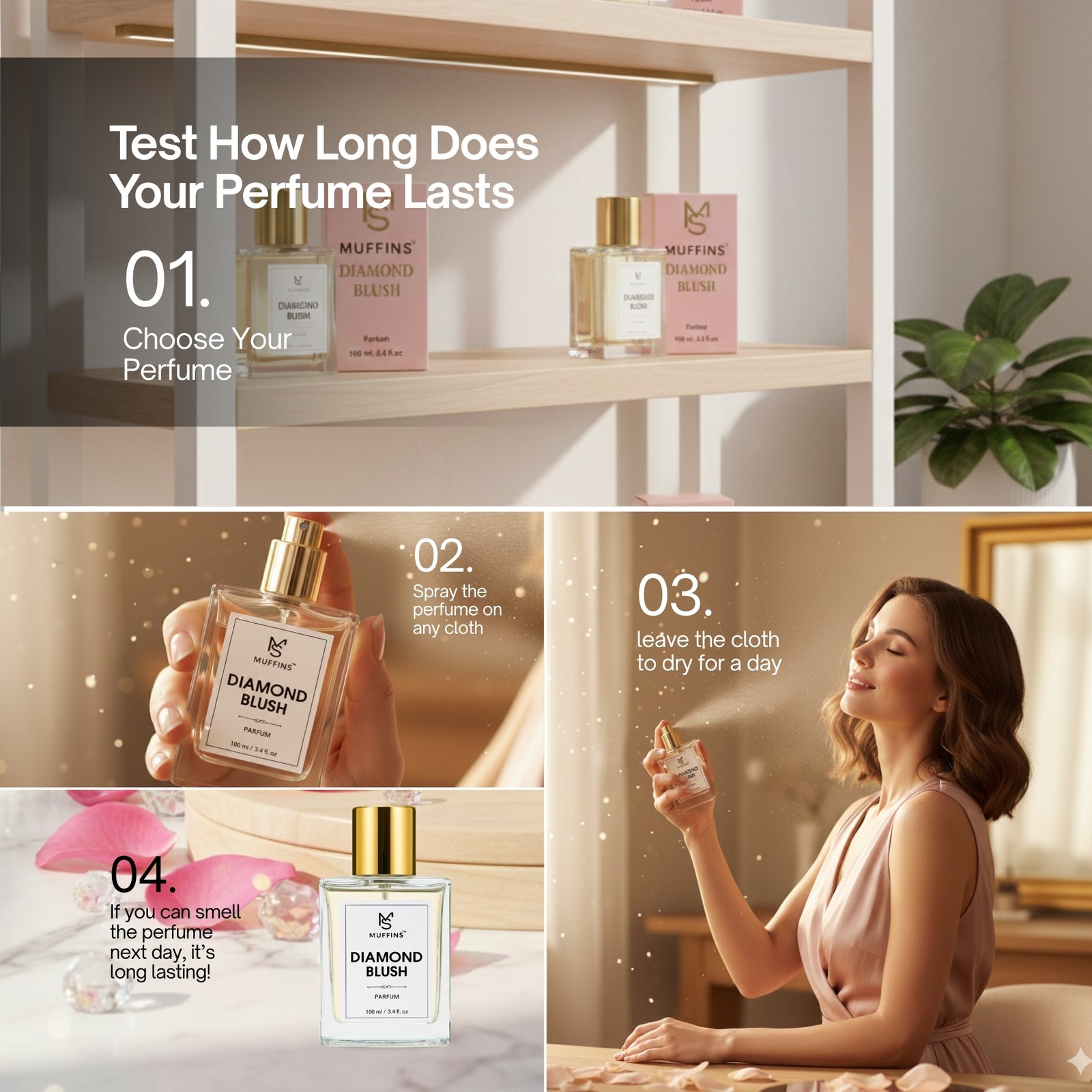 Diamond Blush is a luminous floral musk fragrance that captures the softness of petals bathed in morning light. It opens with fresh, dewy florals that feel clean, airy, and instantly elegant.