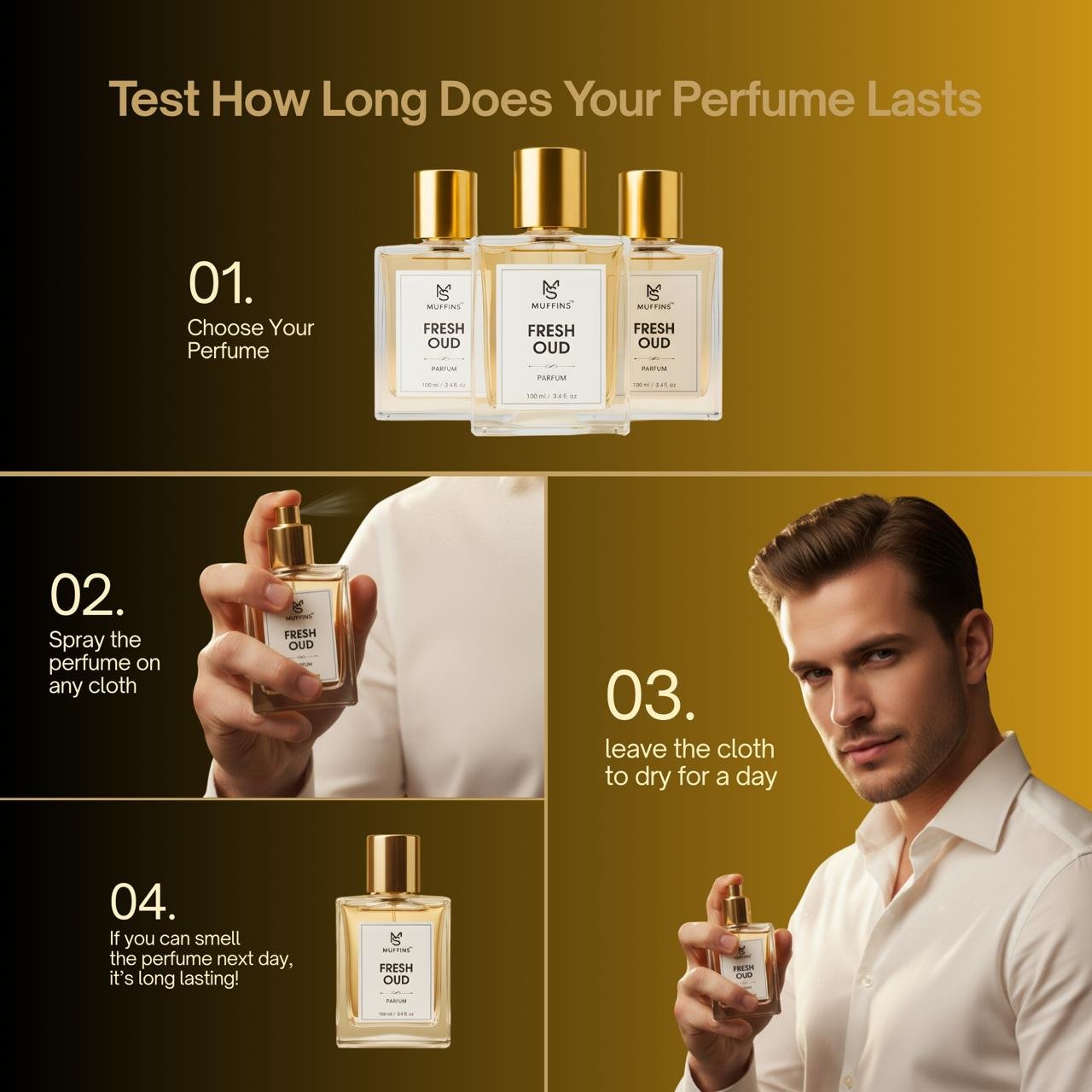 Perfect for evening wear, special daytime occasions, and cooler or temperate climates, Fresh Oud offers excellent longevity (6–10 hours on skin, longer on fabric) with a sophisticated presence.