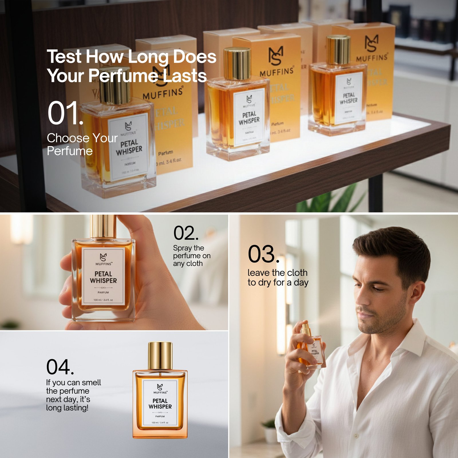 Petal Whisper is a radiant floral musk fragrance that captures the beauty of fresh petals kissed by morning light. It opens with sparkling, dewy florals that feel fresh, luminous, and effortlessly elegant.